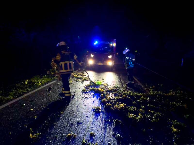 Baum über Straße auf der B500 beim Natursportzentrum. Stellte sich beim Eintreffen als mittelgroßer Ast heraus, der bereits von der Fahrbahn beseitigt wurde.